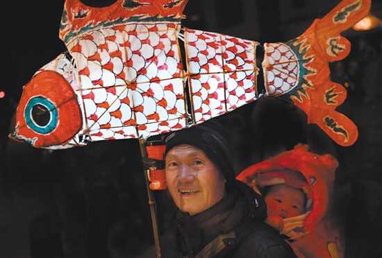 安徽省歙县溪头镇有一个传统民俗“鱼灯会”闹元宵,据说从清光绪初年就开始有了,至今已有上百年历史。村民为了镇邪驱魔,在每年正月十三至十六夜都要举办“舞鱼”活动,庆丰收、祈平安。(新华社 陶明 摄)