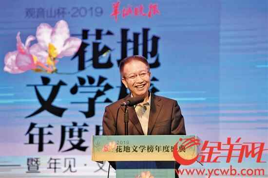 羊城晚报报业集团党委书记、羊城晚报社社长刘海陵在致辞中说,《羊城晚报》的《花地》副刊已经伴随读者走过62年的岁月。从2014年至今,花地文学榜已经产生了30位年度作家(作品),今年又有7位年度作家(作品)上榜。在一代一代羊晚人的辛勤耕耘下,《花地》已成为文学创作的热土。一篇篇文学经典在《花地》萌生,书写历史、服务人民、描绘时代、洞见人心。