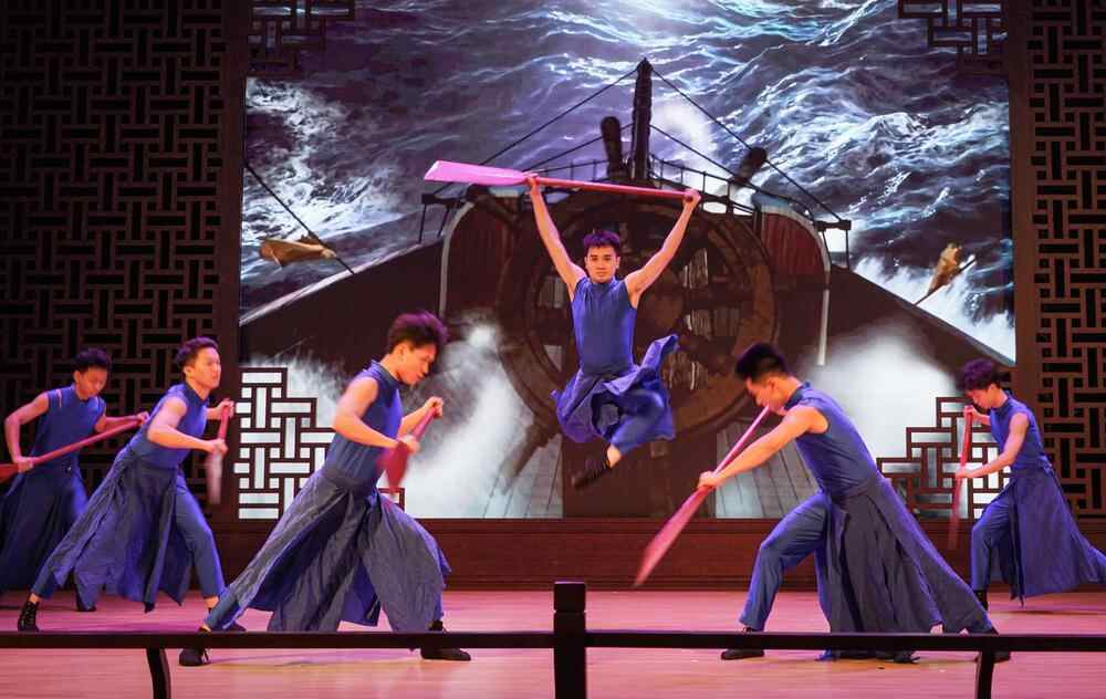 启动仪式现场,各类文化节目,精彩纷呈。舞蹈《乘风破浪》重现了海上丝绸之路远航的艰辛与震撼;