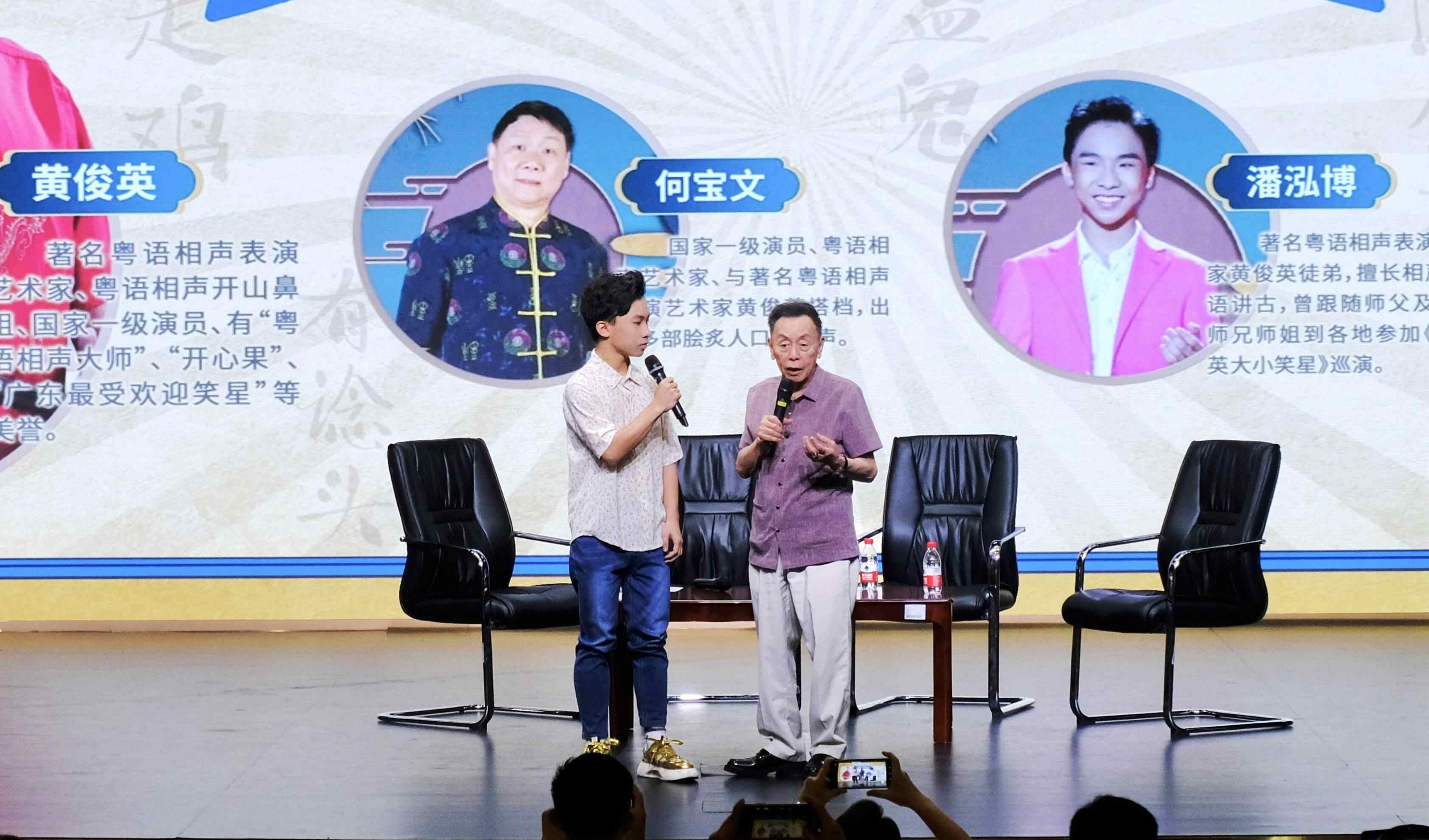本次活动最小的嘉宾,“05后”少年潘泓博讲起自己开始学习粤语相声的经历。他提到,身边不少同龄朋友对粤语相声都有所了解,很多同学期待他和师父黄俊英同台表演。