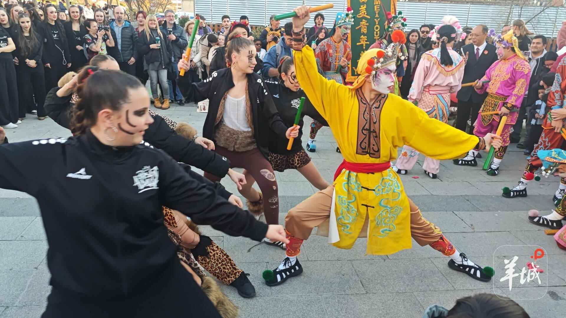 英歌所至,皆是一片欢腾!在这个新春,继俄罗斯芭蕾舞学校的师生学习英歌舞后,西班牙的表演者也拿起了英歌槌。