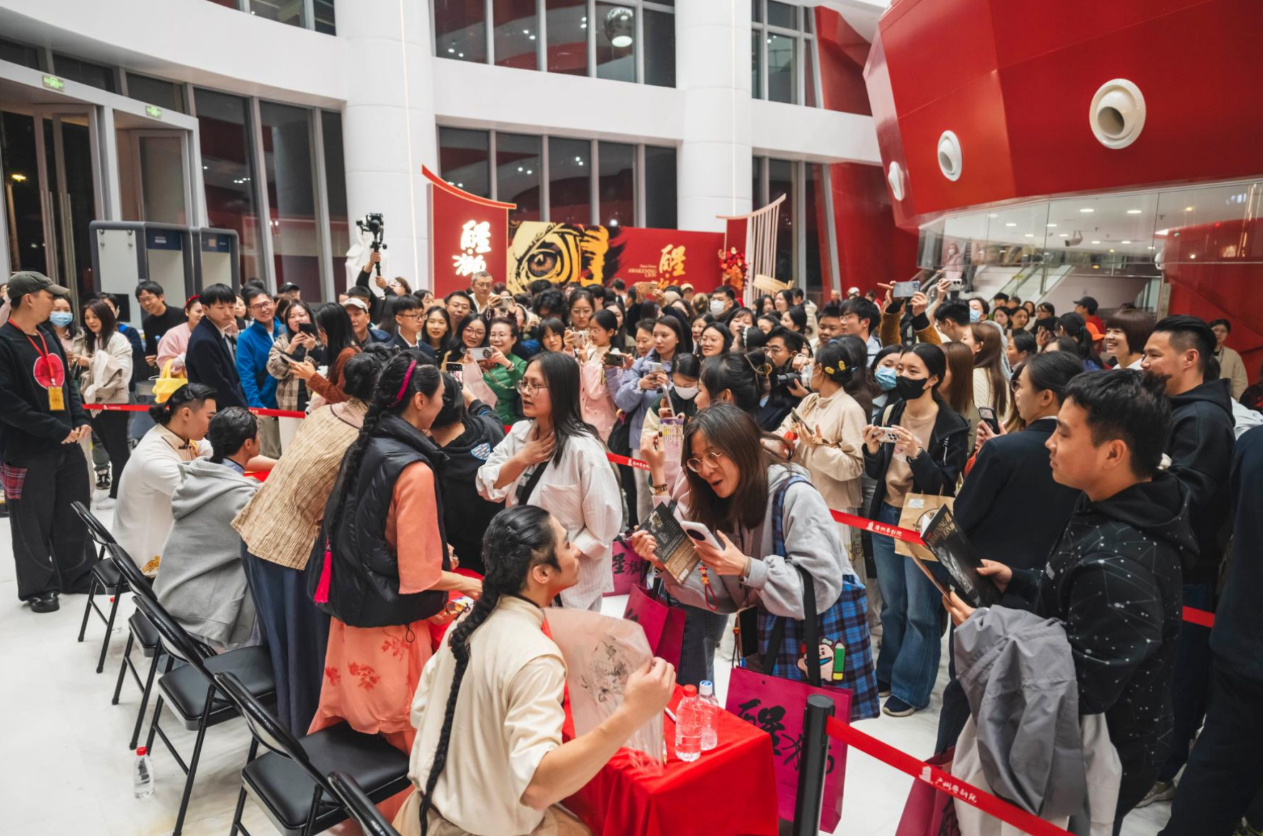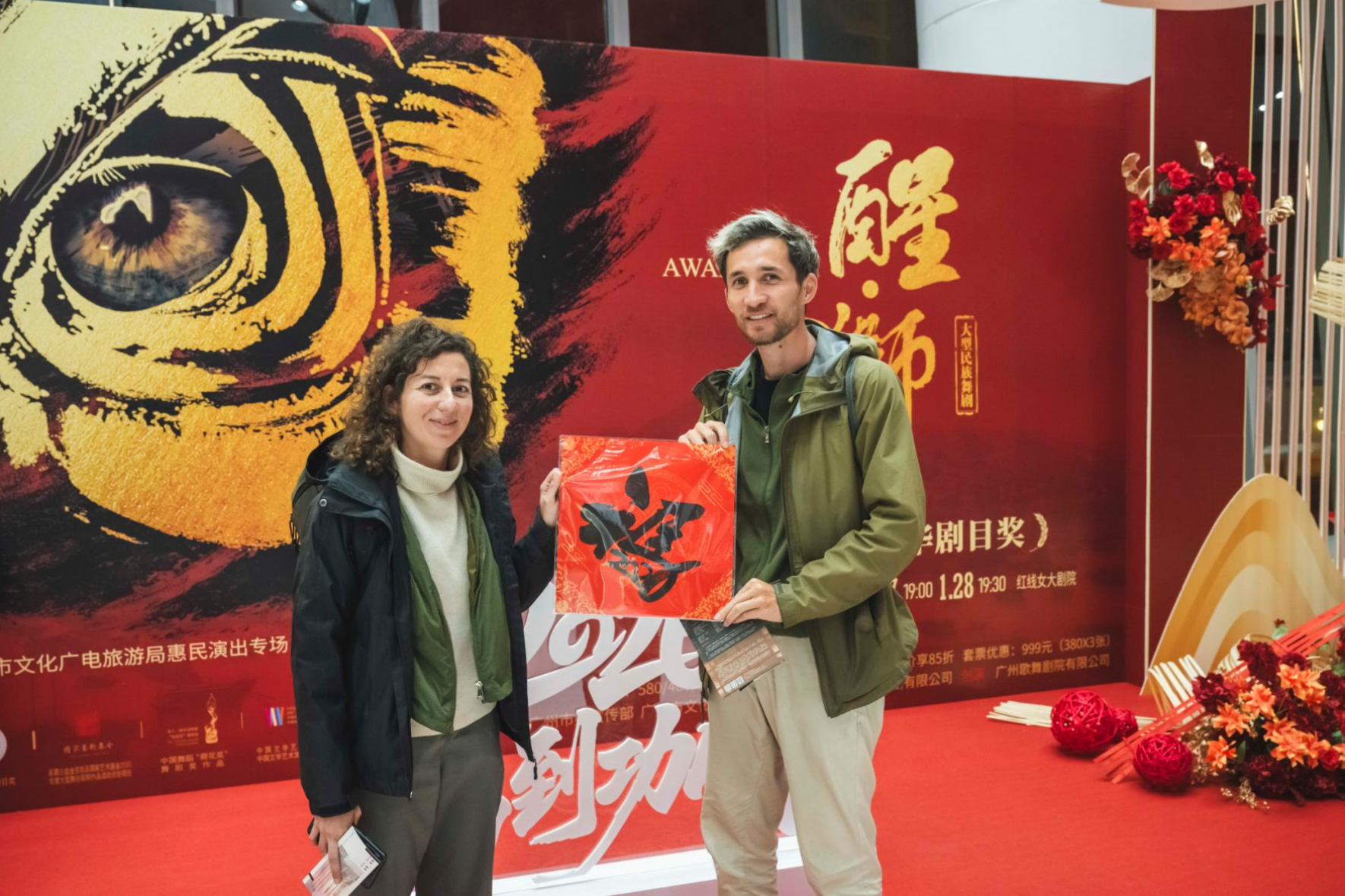 此外,临近春节,剧院前厅特意设置创意书法体验区,书法家现场挥毫,将马年美好寓意融入“福”字笔墨,让观众的观演之旅更具年味与文化温度。