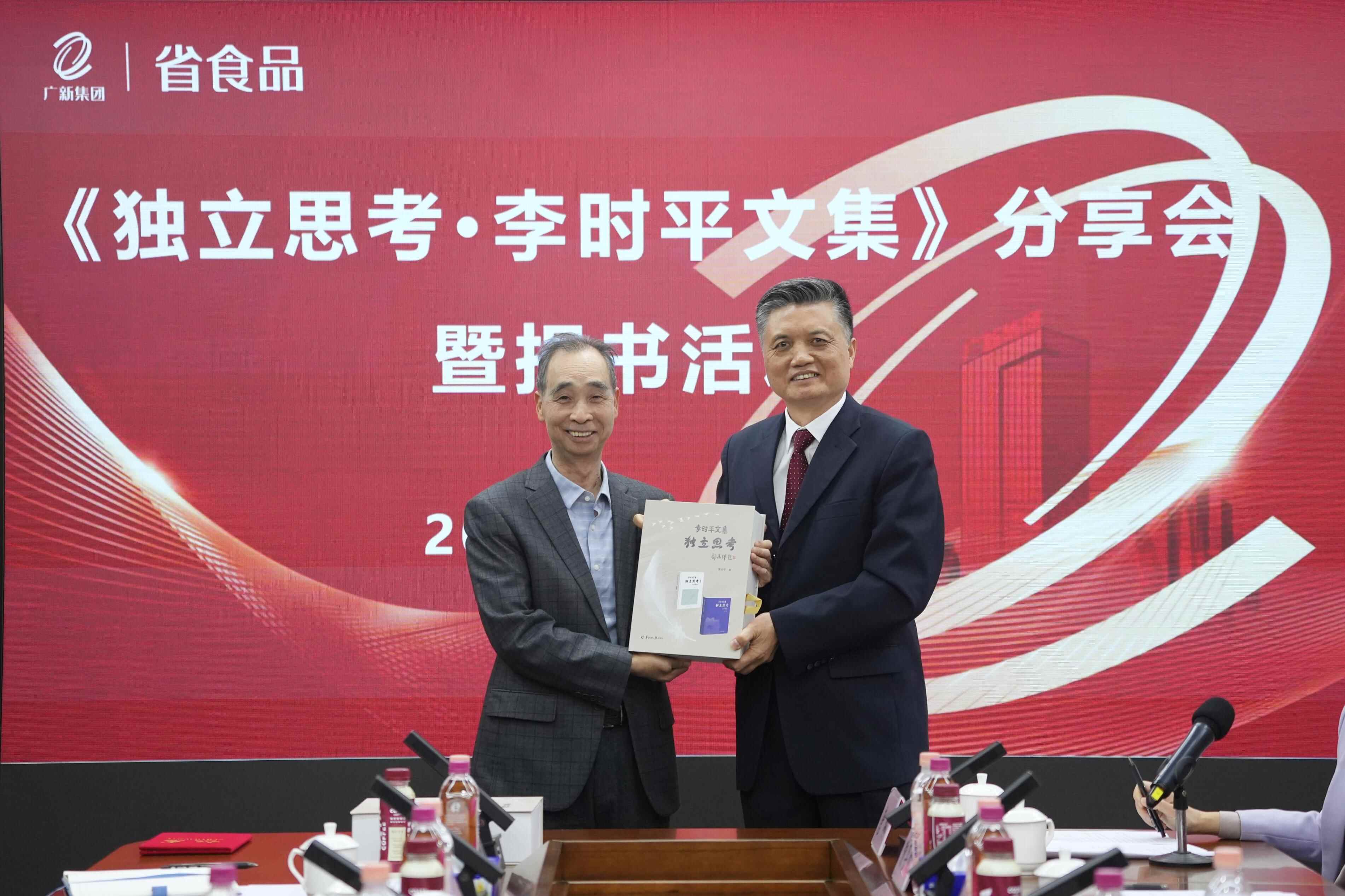 当天,《独立思考·李时平文集》分享会在这里举行,该分享会由羊城晚报出版社、广东省食品进出口集团联合主办。会上,羊城晚报报业集团(羊城晚报社)原党委委员、副社长李时平向广东省食品集团代表、党委副书记谢坤明捐赠了《独立思考·李时平文集》,集团向其回赠捐赠纪念证书。与会嘉宾纷纷表示,这场活动为党媒与国企的深度合作提供了宝贵范例。