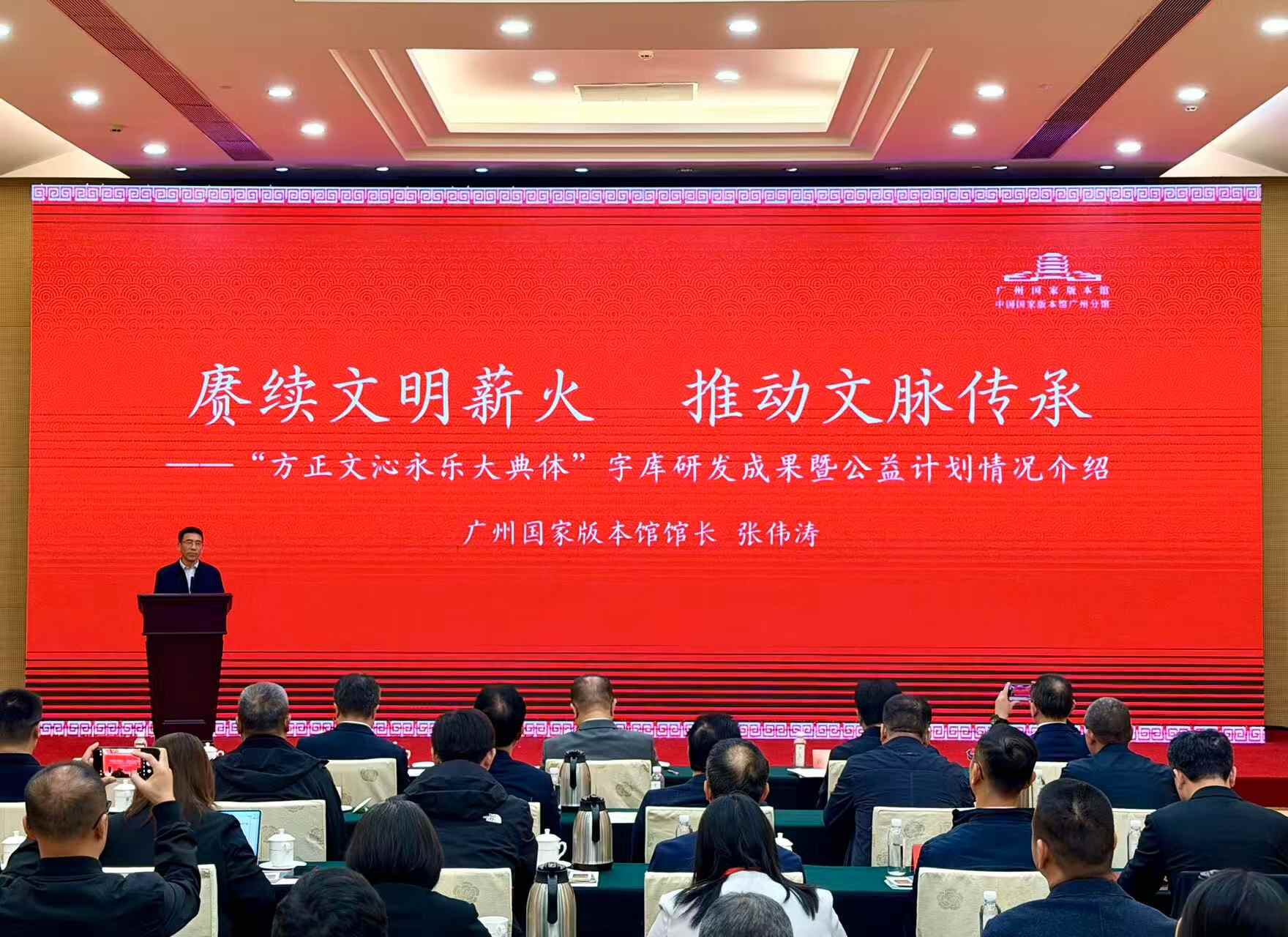 活动现场,广州国家版本馆馆长张伟涛介绍了字库研发及公益计划的有关情况。他表示,“方正文沁永乐大典体”字库于2023年12月启动制作,历时两年完成。该字库以“高标准、高质量”的研发原则,最大程度传承和复现明代原典笔墨气韵,既精准复刻、工整有序,又合乎计算机字体规范与现代审美需求。