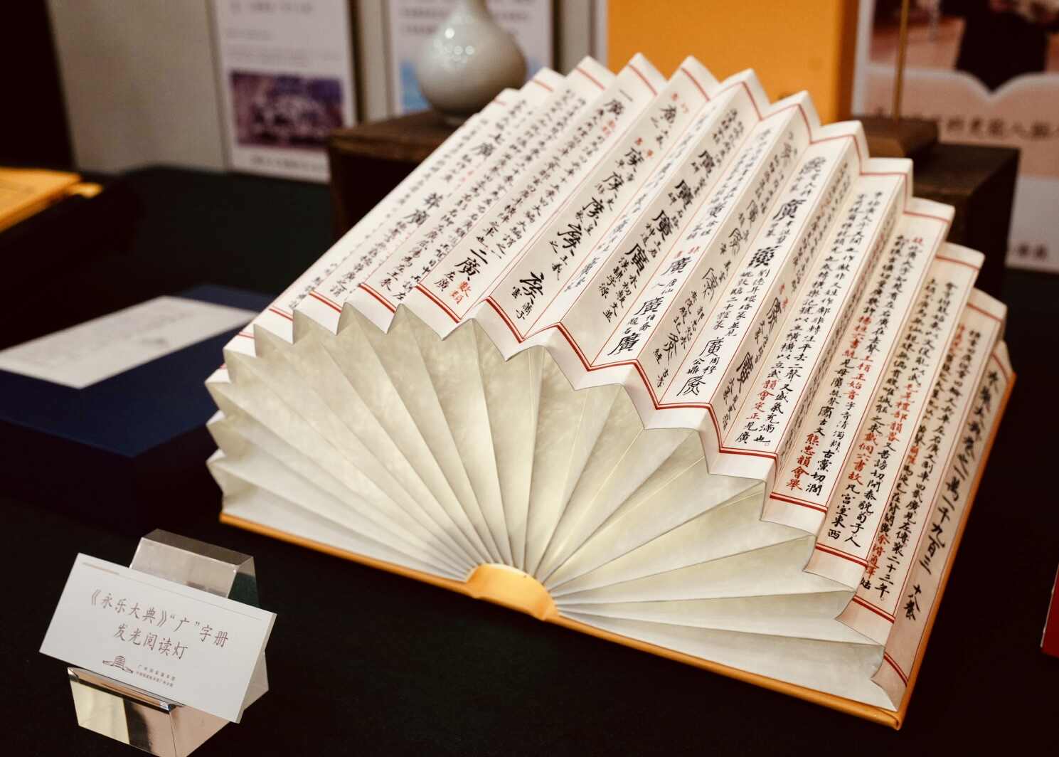 书签、日历、地图、字帖、阅读灯、鼠标垫、冰箱贴、帆布袋……发布会现场展出了应用“方正文沁永乐大典体”的文创、媒体资讯等多元成果,让墨香书韵“看得见、摸得着”。