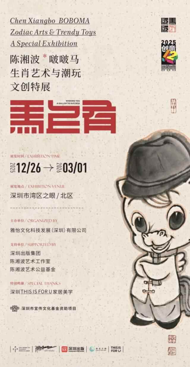 近日,作为“2025 深圳创意十二月”重要文化活动之一,《陈湘波啵啵马生肖艺术与潮玩文创特展》在深圳市湾区之眼(北区)正式开幕。
