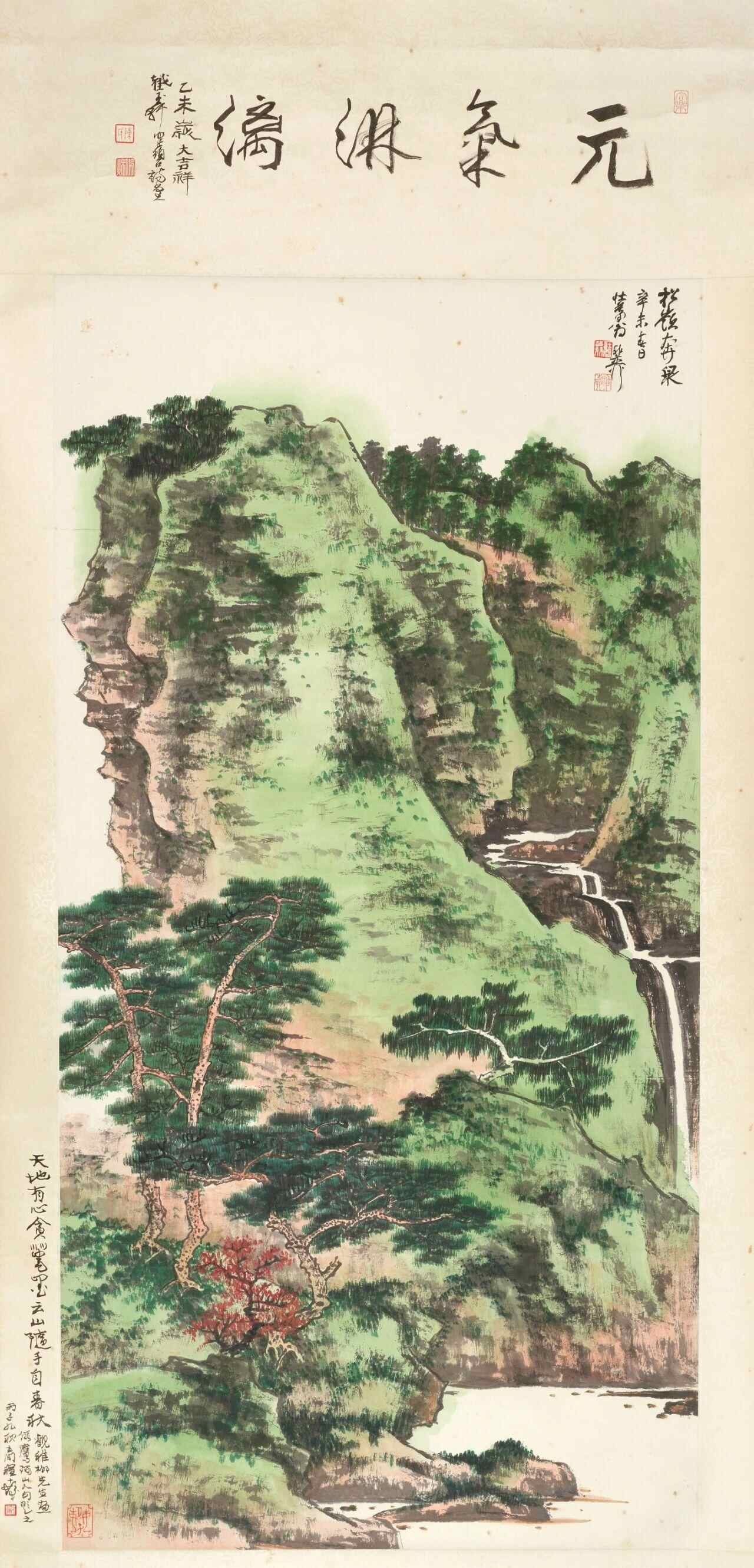其中,1982年香港苏富比释出的吴昌硕《红梅寿石图》尺幅逾八尺,气势恢宏;谢稚柳《松岭奔泉图》融宋人院体之工谨与元人笔墨之清润,松针劲挺、流泉如练,尽显其“骨法用笔”与“墨分五色”的高超驾驭,堪称海派山水典范。
