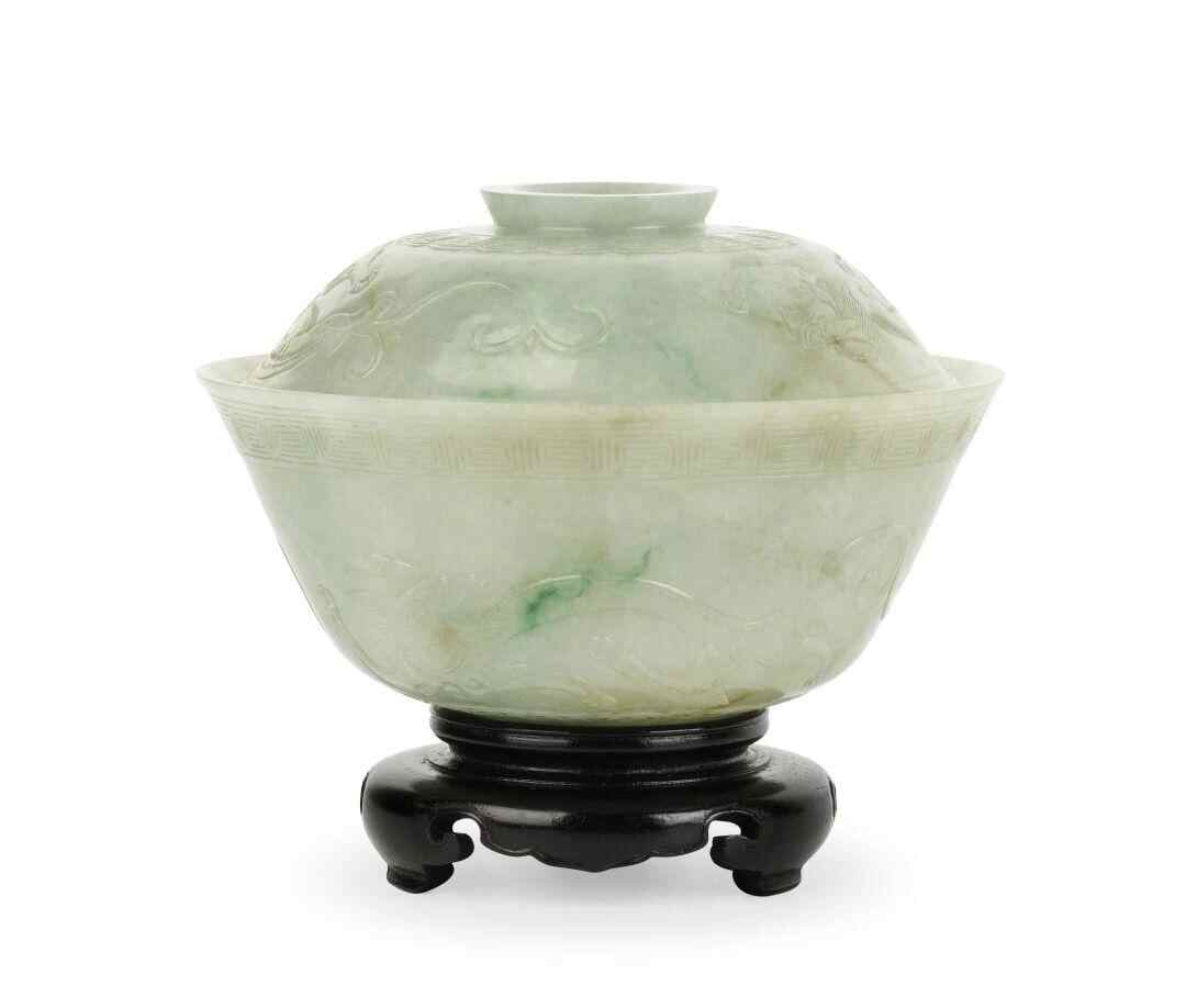 清乾隆翡翠整挖螭龙纹盖碗则以其罕见工艺与翠色闻名,翡翠色泽浓郁均匀,螭龙纹饰灵动飘逸,器形规整、盖合严密,彰显乾隆时期宫廷玉雕之精湛水准。