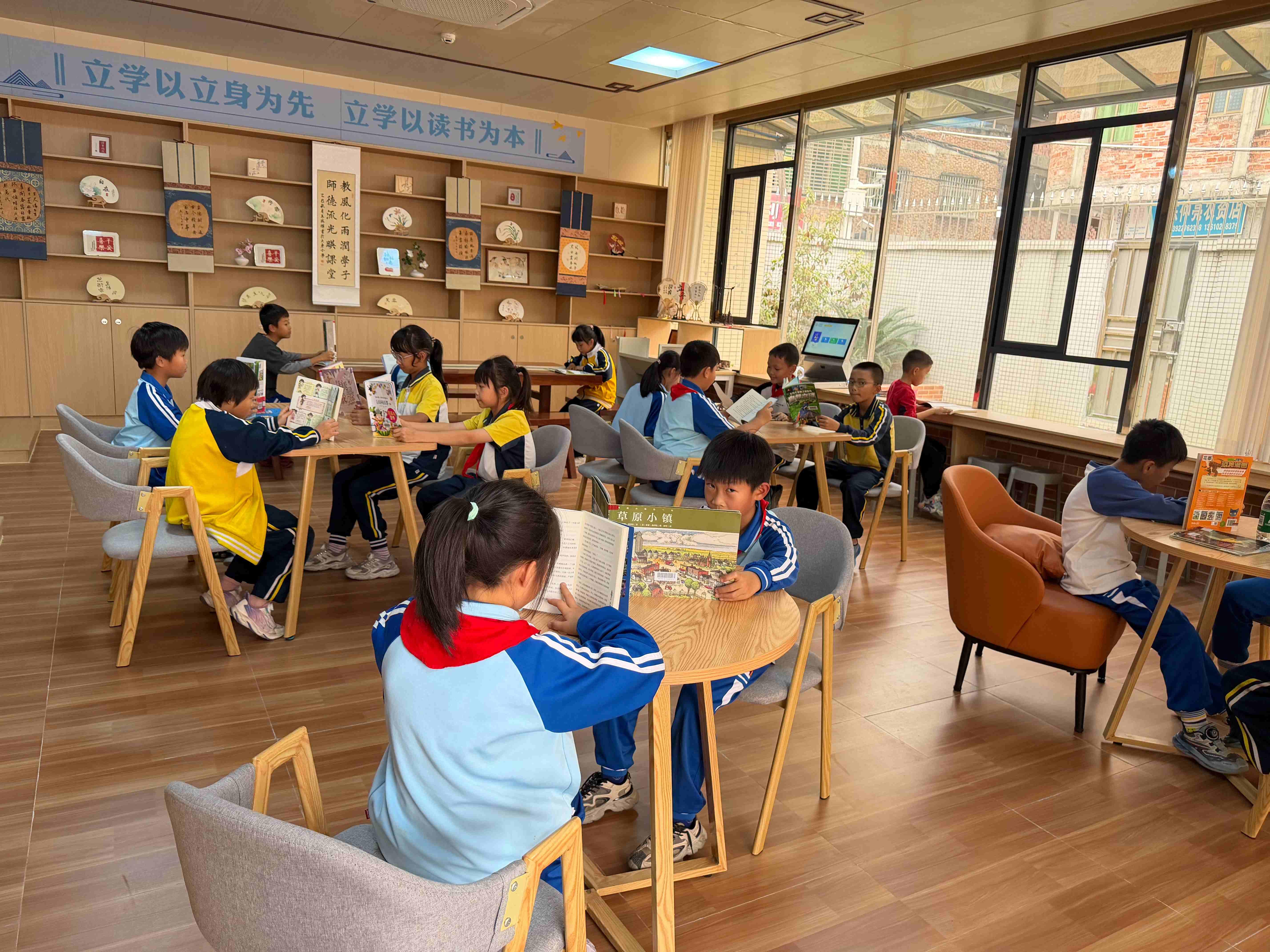 其中,花东镇大东小学分馆不仅作为“馆校合作”分馆,还深度融入“花城书房”提质升级工程,打造集校园服务与社区服务于一体的“一馆双门、双向服务”新型公共文化空间,有效推动公共文化服务向校园与乡村双向延伸。