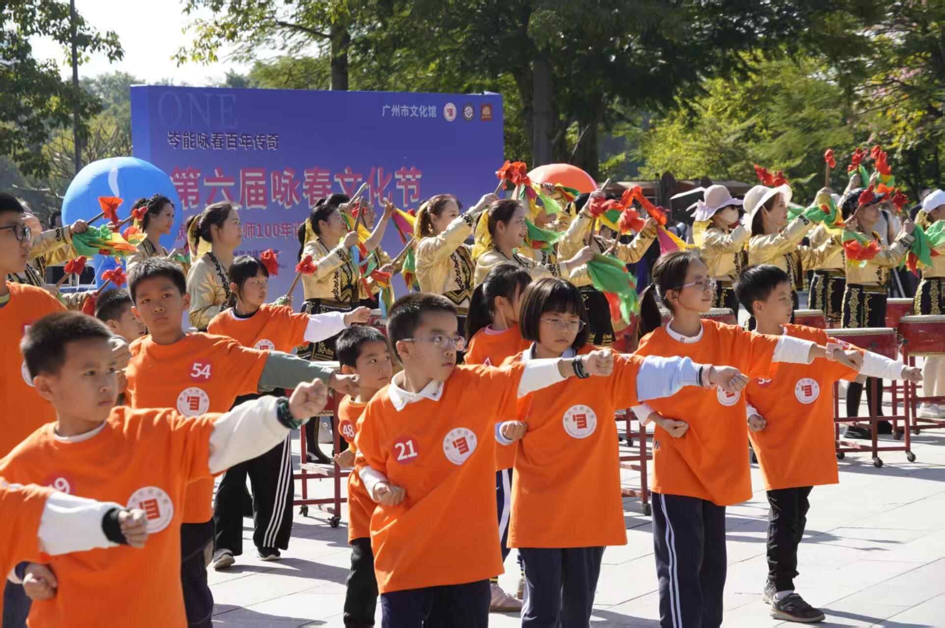广州市文化馆千人广场上演的千人咏春展演堪称视觉盛宴。广州市第一中学附属詹天佑小学等众学校的学子们带来咏春快闪、《咏春鼓武飞扬》《咏春拳操》等表演,将课间操与岑能咏春十二散式相结合,展现青少年传承非遗的蓬勃活力。