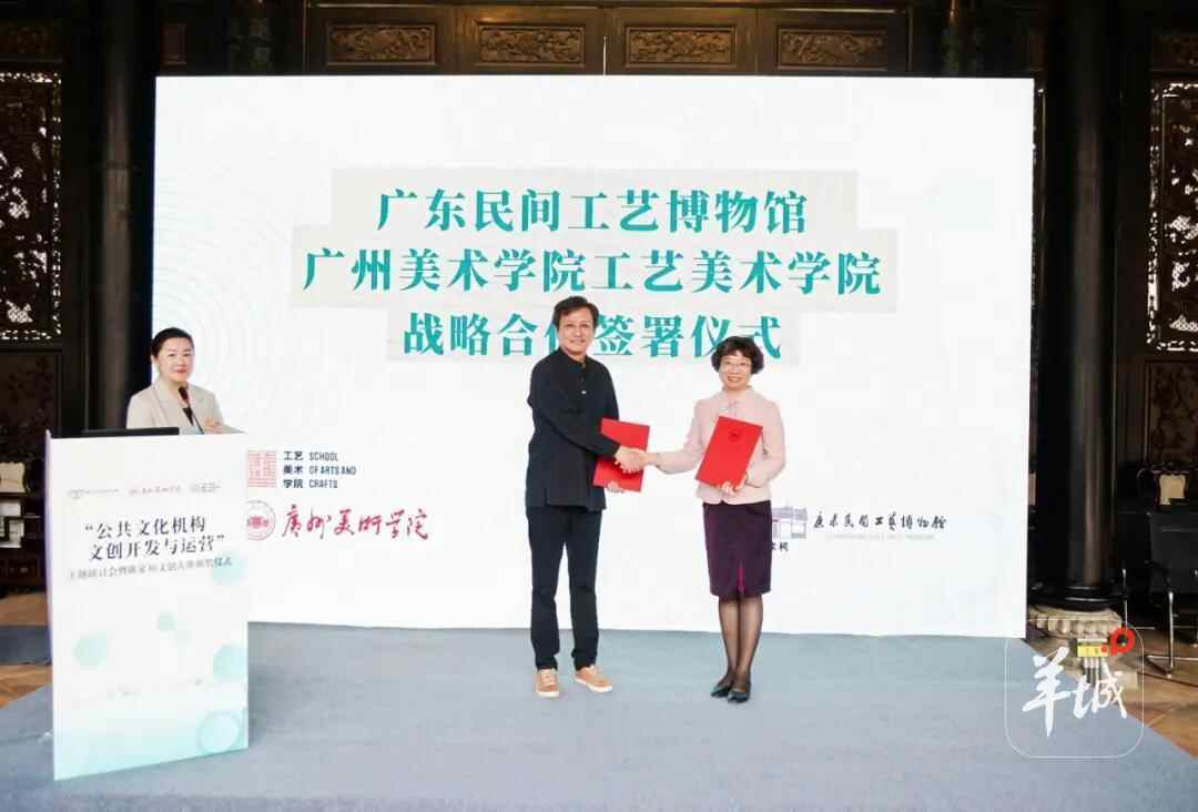 颁奖仪式后,广东民间工艺博物馆馆长黄海妍与广州美术学院工艺美术学院院长齐喆上台,交换战略合作协议文本,这标志着双方在工艺美术学科研究、人才培养、文化传播、成果转化等领域的合作迈入新阶段,为馆校协同推动岭南文化传承发展奠定坚实基础。