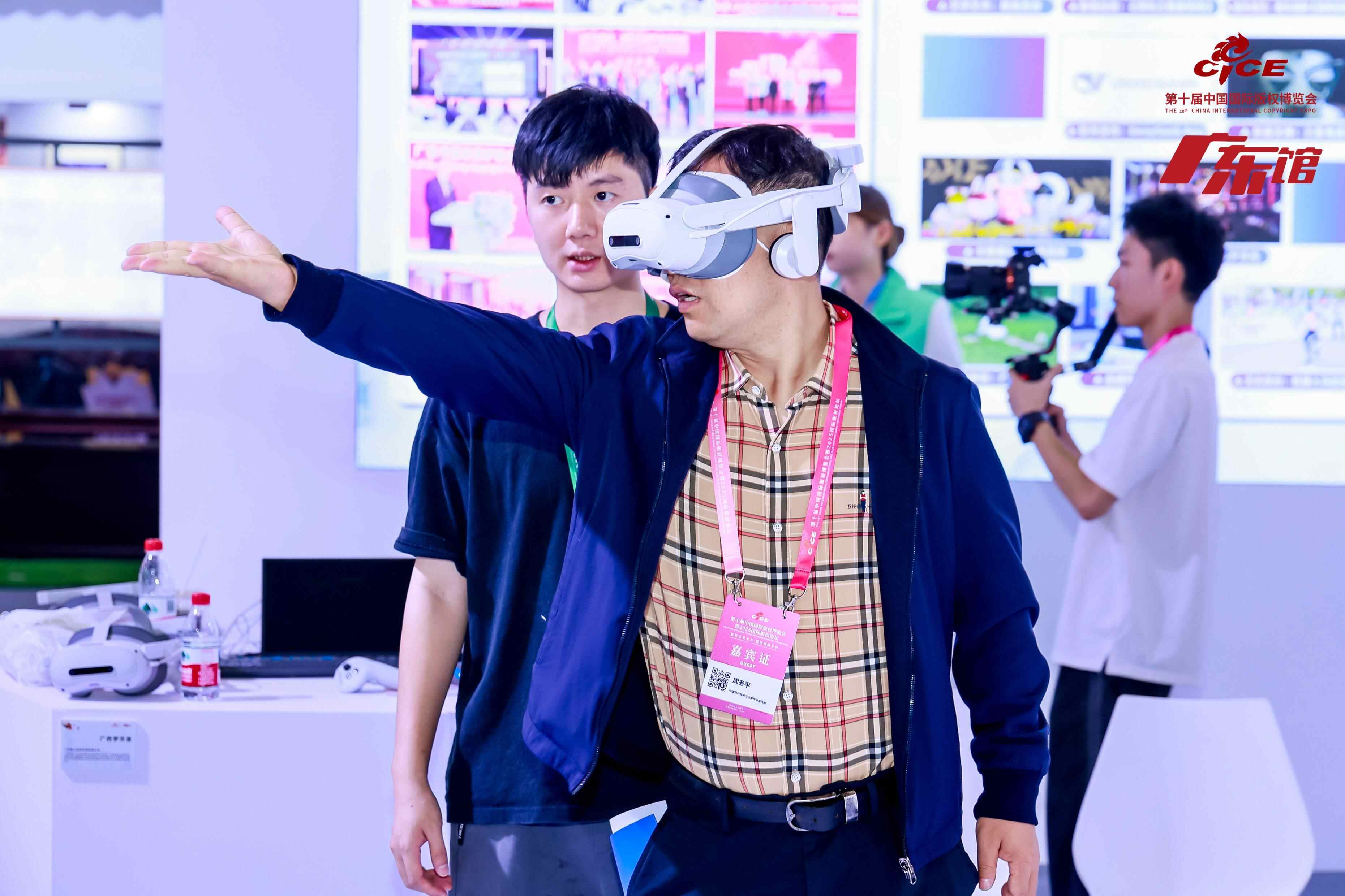 广东馆巧妙融合了传统岭南文化元素与现代科技展示手段,通过图文、实物、模型、多媒体互动、VR体验等多种形式,生动呈现了新闻出版、广播影视动漫、软件和信息技术服务、游戏电竞等236件展品,彰显了广东作为经济大省、知识产权大省在版权领域的硬核底气和强劲活力,给来访观众留下了深刻印象。