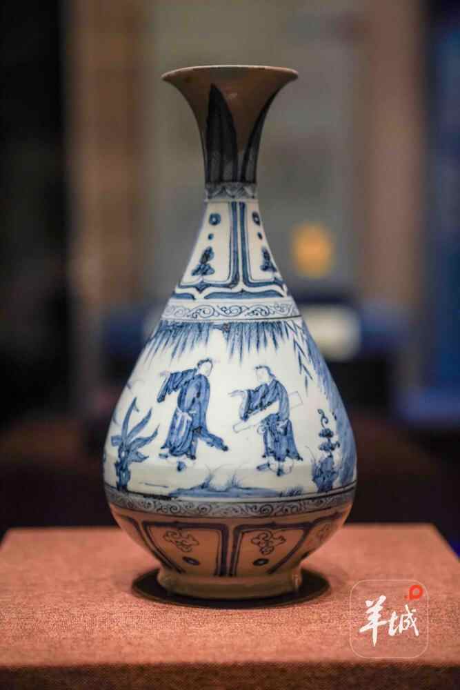 广东省博物馆科研部副主任、展览执行策展人丁蕾向记者介绍,此次展出的一件元代青花人物图玉壶春瓶是中外文化、贸易交流的重要见证。