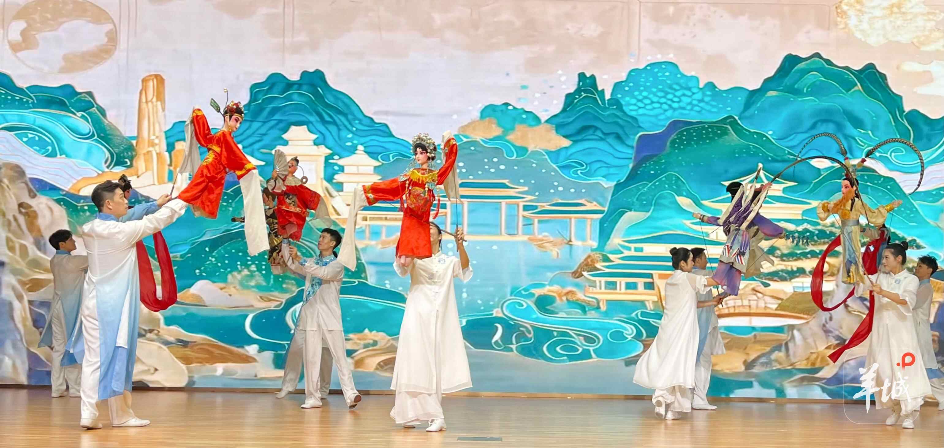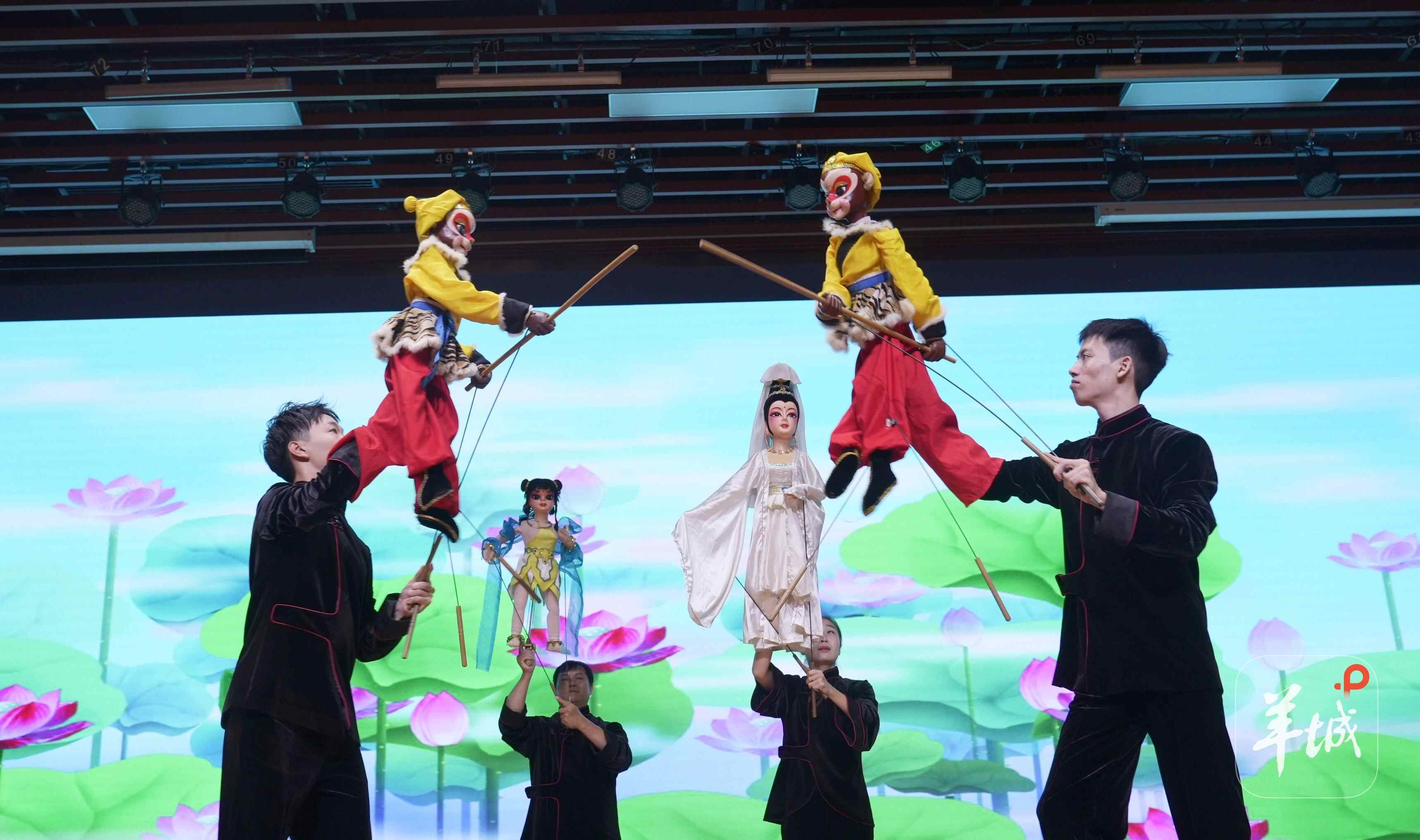 活动以节目《南粤华彩》热闹开场,在剧院老师的操纵下,二郎神、穆桂英等广东杖头木偶或翻腾跳跃、或舞枪弄棒、或水袖轻舞……搭配电子国风背景音乐,牢牢抓住读者目光。精彩木偶剧目轮番登台,近500位读者在现场近距离感受国家级非遗的魅力。