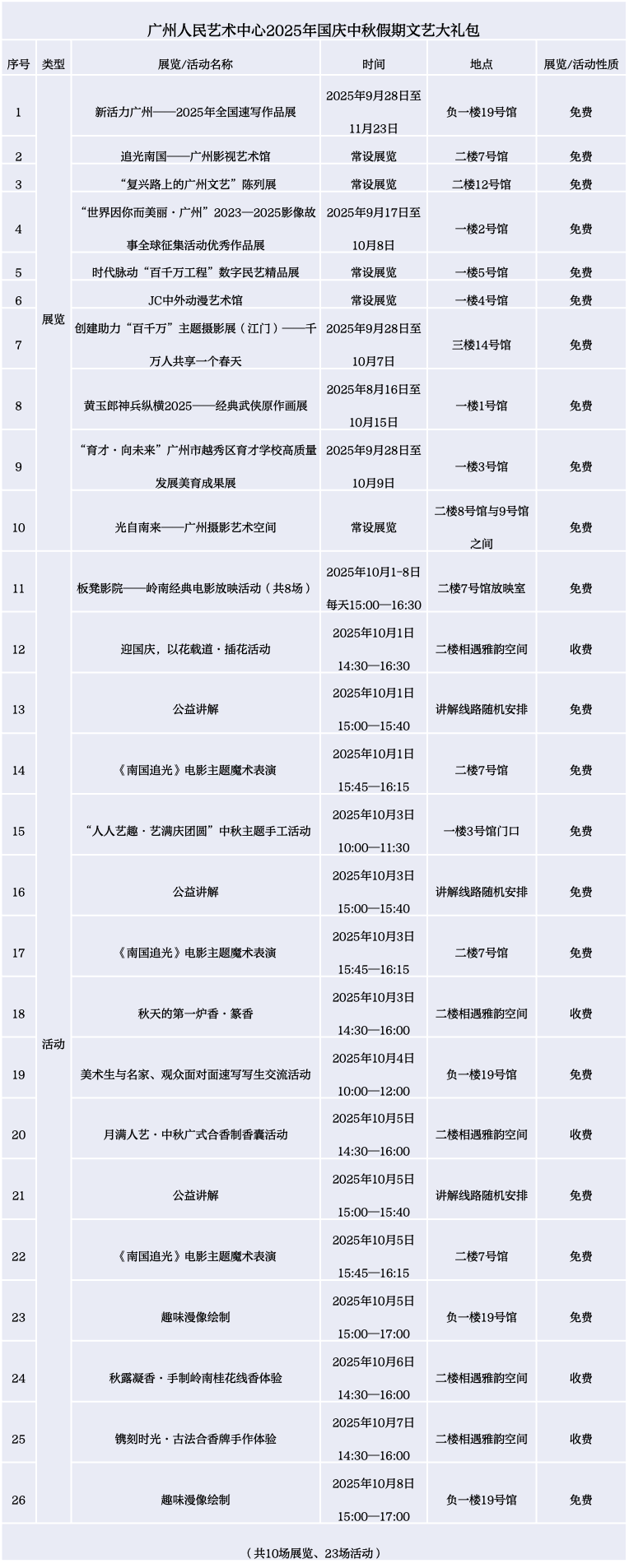 据悉,广州人民艺术中心将在国庆中秋双节推出多场电影主题魔术表演,同时作为2025广州电影产业博览交易会“跟着电影游广州”打卡点之一,与永汉电影院等热门打卡点串珠成链,为假期添上一抹“文艺亮色”。